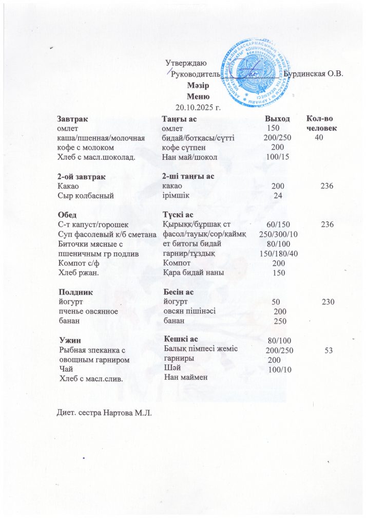 мәзір 20.10.2025