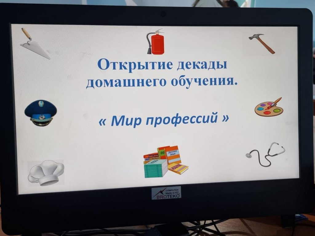 Бүгін ерекше шабытқа толы маңызды шара- үйден оқыту онкүндігінің салтанатты ашылуы өтті. Онкүндік тақырыбы: «Үйден оқытудағы мамандықтар әлемі».Мереке жүргізушінің әсерлі сөздерімен басталды. Залда ерекше тыныштық орнап, бәрі толқумен тыңдады: