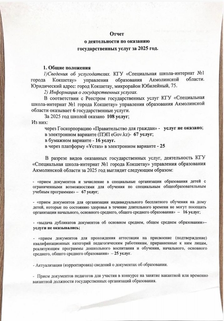 2025 жылға арналған мемлекеттік қызметтерді көрсету жөніндегі іс-шаралар туралы есеп