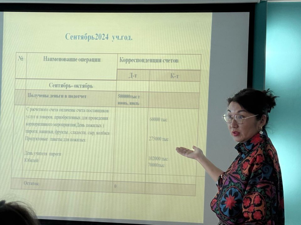 Отырыс барысында мектептің бас бухгалтері Жанна Есханқызы Төлебергенова 2024-2025 жылдарға арналған қаржылық есебін ұсынды. Баяндамасында ол жалақы, зейнетақы жарналары және қызметкерлердің жалақысынан...
