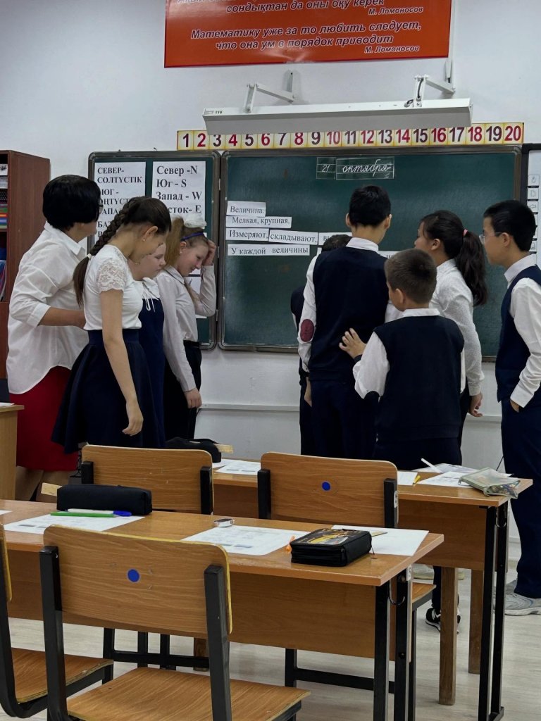 Бүгін педагог Курмангалиева Халима Каппасовна және Вафина Асия Ибрагимовна 6 «В» сыныбында математика және география пәндерінен «Компас құрылғысы. Компасты қолдану ережелері. Өлшемдер арқылы алынған сандарды қосу және азайту» тақырыбында ашық кіріктірілген сабақ өткізілді.