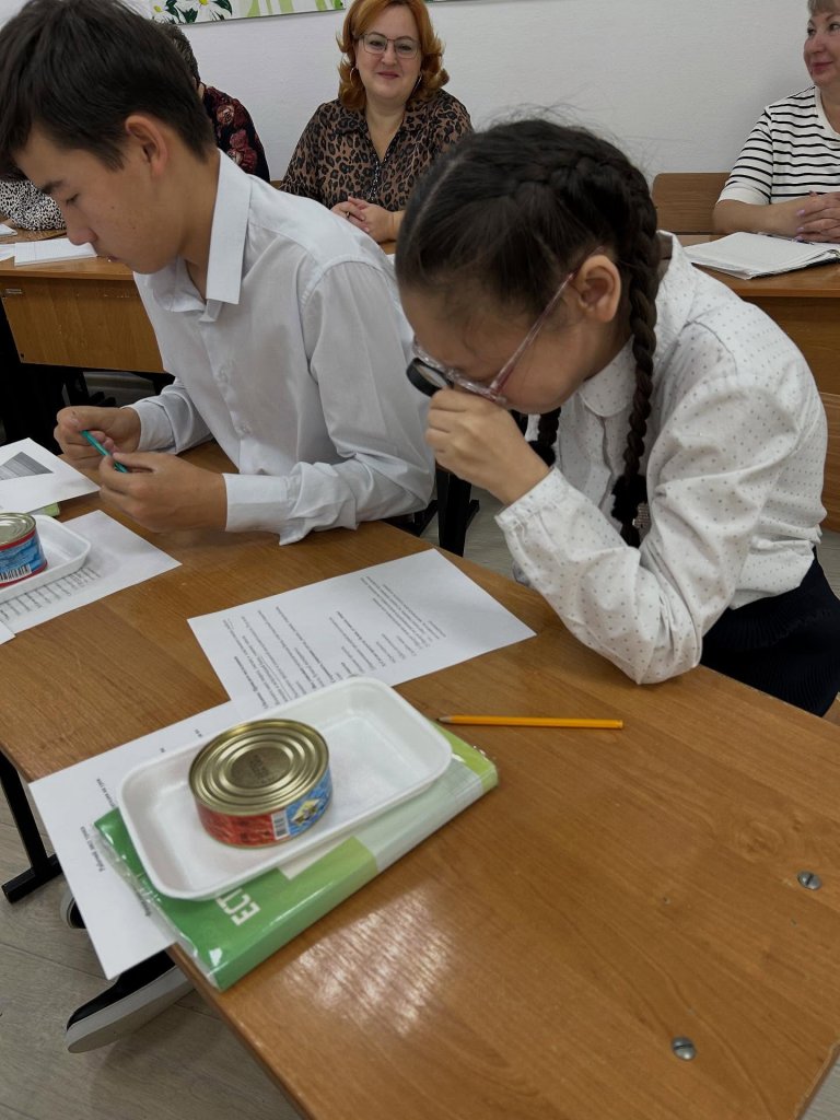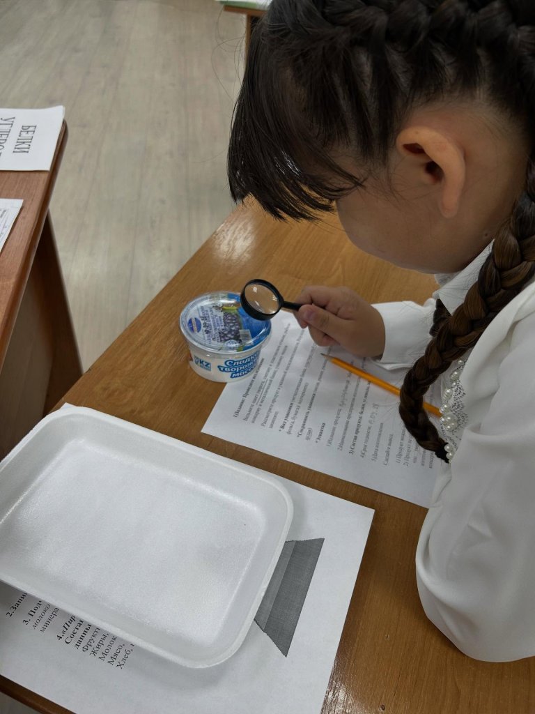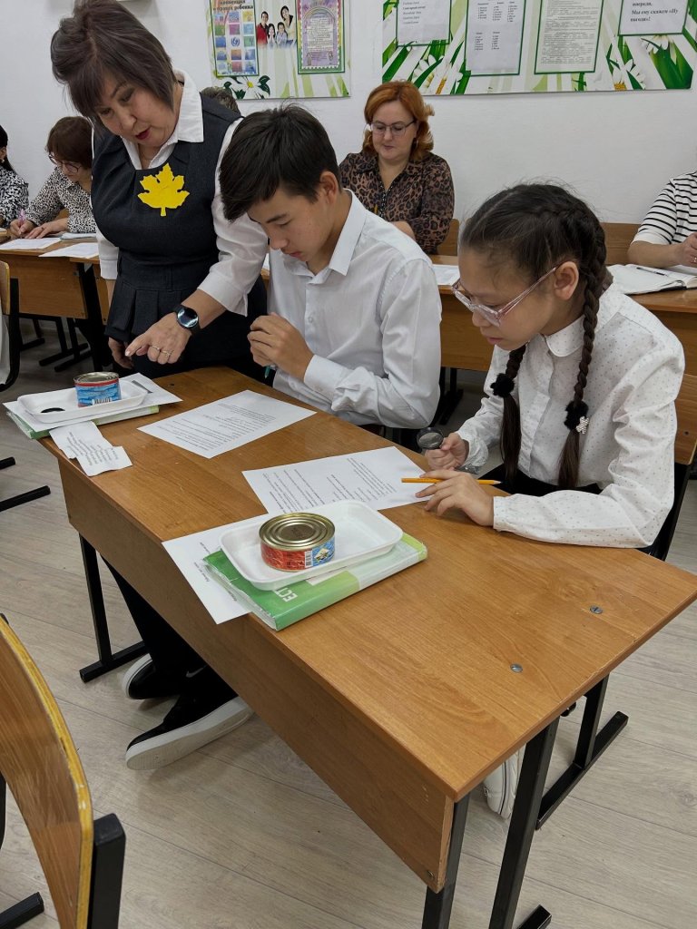 Қызықты, мазмұнды әрі тәжірибеге бағытталған бұл сабақ оқушылардың назарын бірден өзіне аударды. Балалар мұғаліммен бірге тек теорияны тыңдап қана қоймай, өздері зерттеушіге айналды: азық-түлік өнімдерін зерттеп, жапсырмаларды мұқият қарап, жарамдылық мерзімін, құрамын және сақтау шарттарын анықтады.