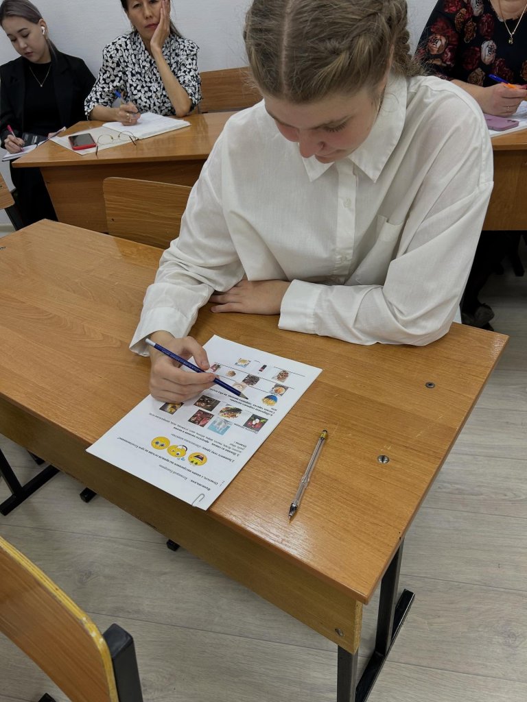 Сабақ барысында оқушылар тағам пирамидасын да құрастырды. Онда қандай тағам түрлері күнделікті ас мәзірінде болуы керек екені және олардың мөлшері көрнекі түрде көрсетілді.