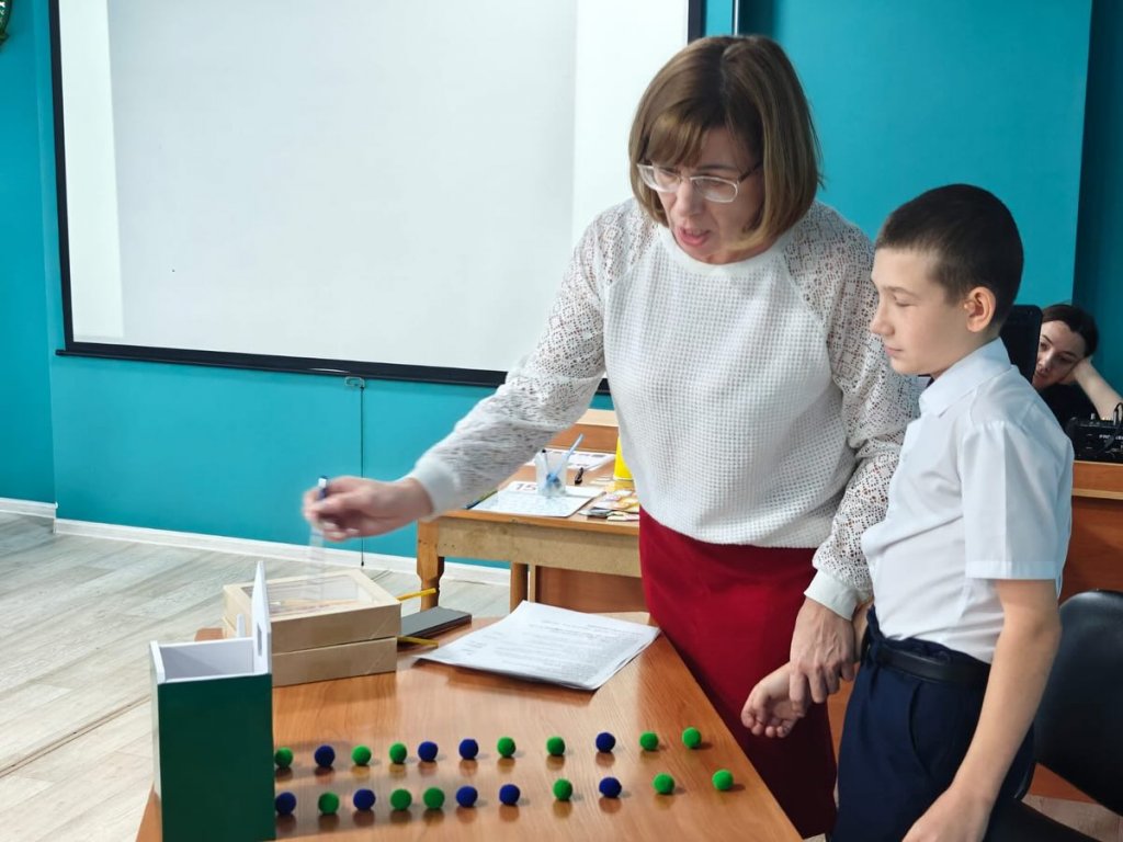 «Сан және мөлшер. 15 саны» тақырыбында дефектолог Татьяна Анатольевна Варнавина 8 «В» сынып оқушысы М. Поповпен жеке сабақ өткізді. Сабақтың мақсаты – математикалық түсініктерді, кеңістіктік қабылдауды және сөйлеу белсенділігін дамыту.