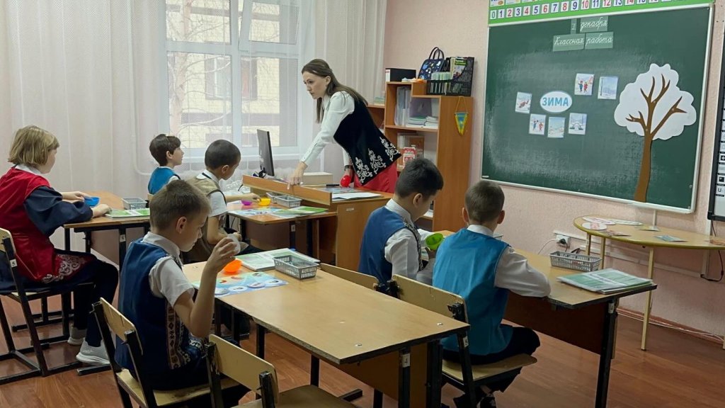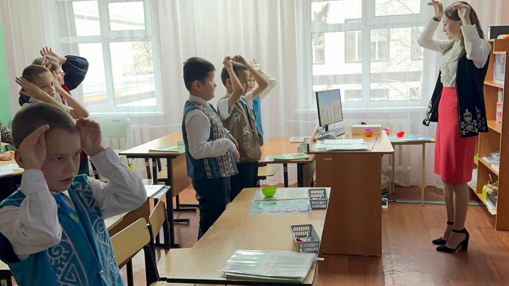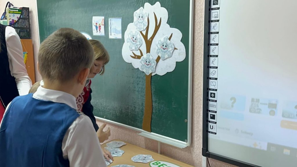 Сабақ көрнекі жаттығулардан басталды - балалар тек көздерімен қар ұшқындарын бақылап, стресстен «демалып», өнімді жұмысқа дайындалды.