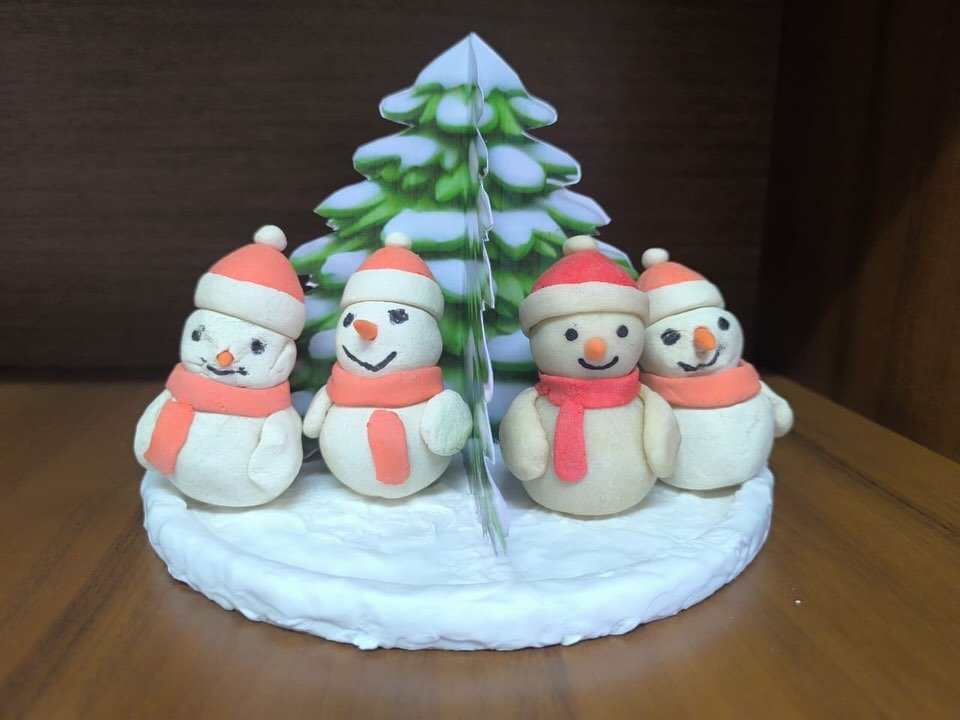 Алдымен фольгадан үлкен және кіші шарлар жасап, аққаланың негізін қалыптастырды. Содан кейін қамырды үстел үстінде саусақтарымен жайып, домалатып тегістеді.Шарларды дайын қамырмен қаптады. Аққаланың басы мен денесін бірінің үстіне бірін орналастырды.Қолдарын жасау үшін кішкентай қамыр кесектерін алақандарында домалатып, бір шетін сұқ саусақпен үшкірлей тартты. Қолдарын аққаланың екі бүйіріне жапсырды.Аққалаға бас киім мен шарф мүсіндеді. Соңында көздері мен мұрнын орналастырды.