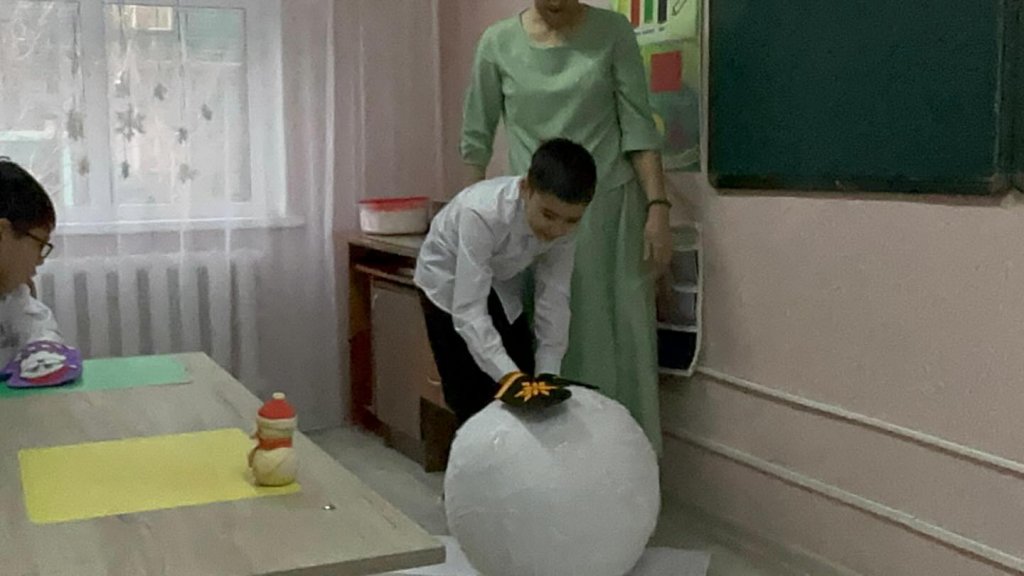 3«А» сыныбында «Көлемді бұйымдар «Аққаланы мүсіндеу» тақырыбында ашық бейнелеу өнері сабағы өтті.Сабақтың негізгі мақсаты -оқушыларды конструктивті әдіспен мүсіндеуге үйрету, түрлі тәсілдерді қолдану: алақанмен және үстел үстінде домалату, үзіп алу, бастыру, басу, жалпақтау, саусақпен тарту.Жұмысқа кіріспес бұрын балалар мұғалім Индира Муратбековна Окапова дайындаған тақтадағы аққаланың сызбасын мұқият қарап шықты.