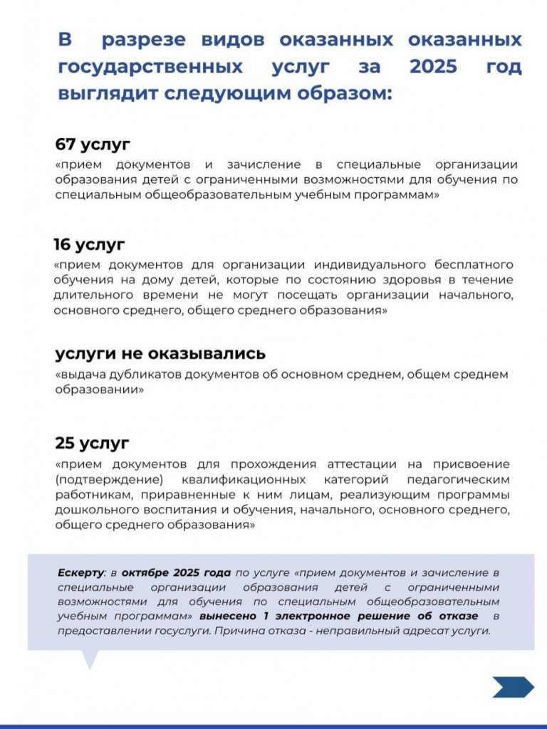 2025 жылға арналған мемлекеттік қызметтерді көрсету жөніндегі есеп