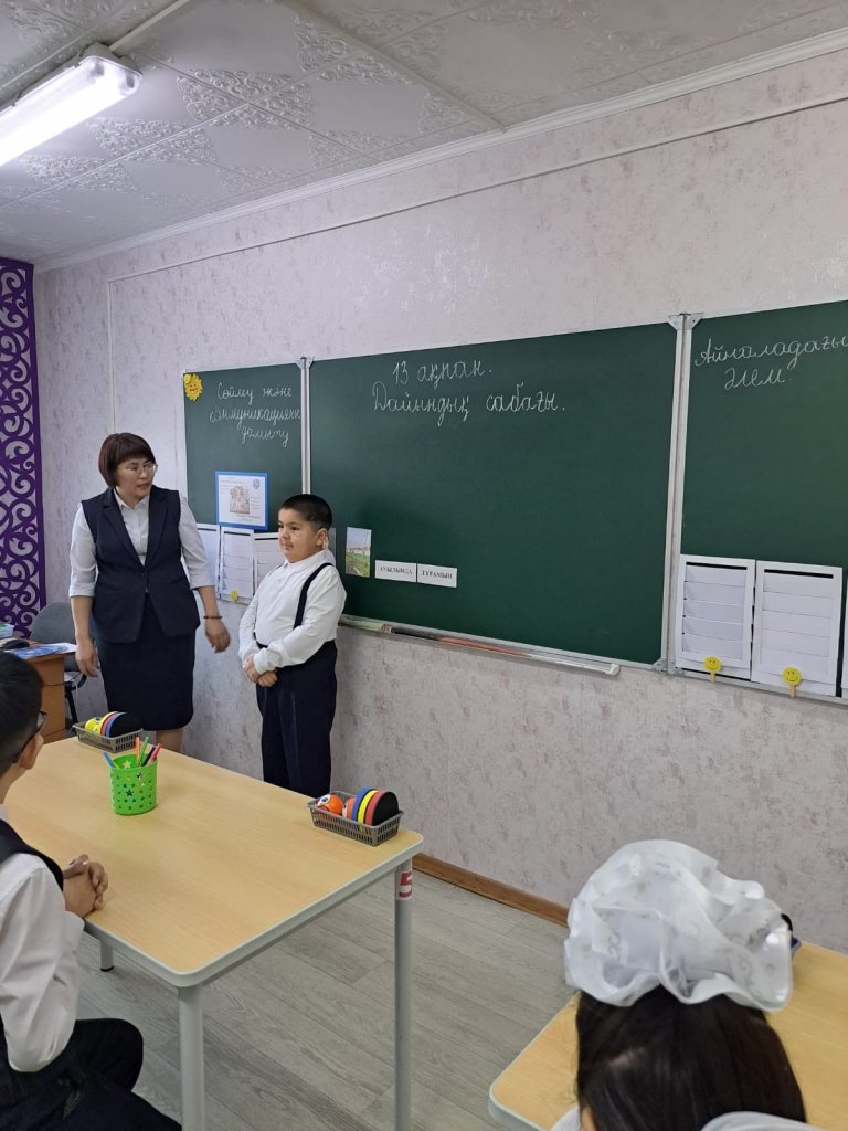 Өткен аптада педагог Айжан Агзамовна Байтенова 6 «А» сыныбында ашық өзіндік дайындық сабағын жоғары деңгейде ұйымдастырды. Сабақ барысында Сөйлеу және коммуникацияны дамыту пәнінен «Әріптер мен дыбыстар» тақырыбы және Айналадағы әлем пәнінен «Табиғат құбылыстары» тақырыбы қамтылды.
