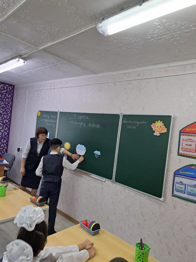 «Табиғат құбылыстары» тақырыбы бойынша оқушылар жыл мезгілдеріне байланысты табиғи өзгерістерді атап, қар, жел, боран, тайғақ сияқты құбылыстар туралы өз ойларын ортаға салды. Суреттермен жұмыс, сұрақ-жауап және топтық тапсырмалар арқылы білімдері бекітілді.