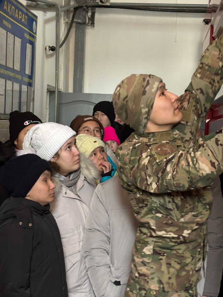 Экскурсия балалар үшін ерлік, жауапкершілік және күнделікті жасалатын нағыз батырлық әлеміне саяхат болды. Бөлім қызметкерлері оқушыларды жылы қарсы алып, құтқарушы мамандығының ерекшеліктері туралы, төтенше жағдайларда командалық бірліктің маңызы жөнінде әңгімеледі.
