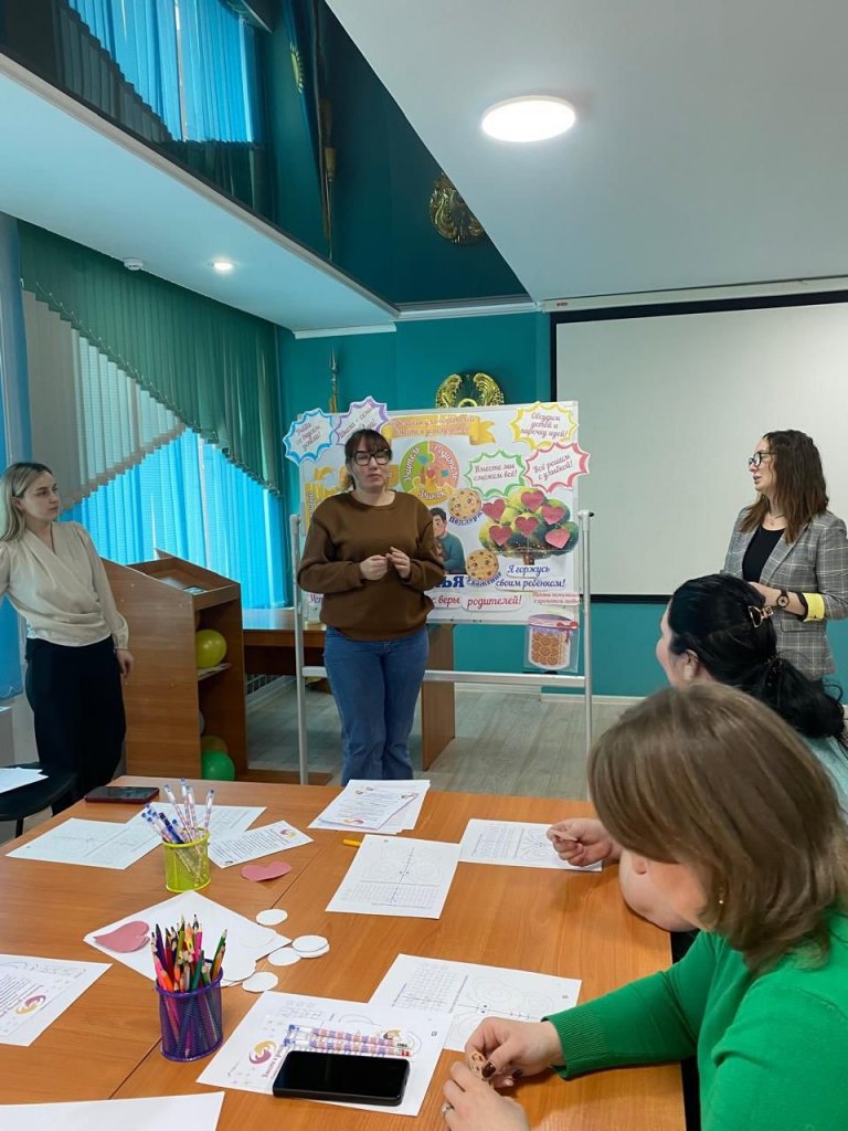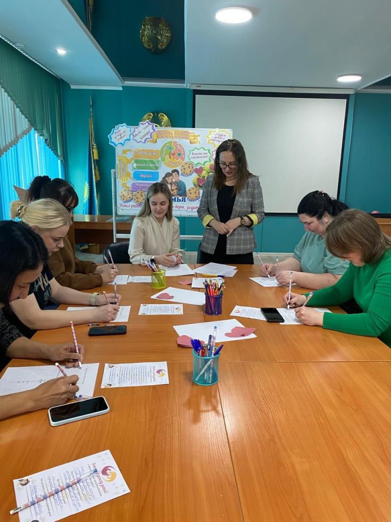 Кездесу соңында қатысушылар өз ойларымен бөлісті:«Бүгінгі тәжірибені үйде қалай қолданасыз?»,«Балаға қолдау көрсету туралы қандай жаңа мәлімет алдыңыз?»