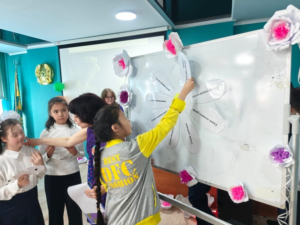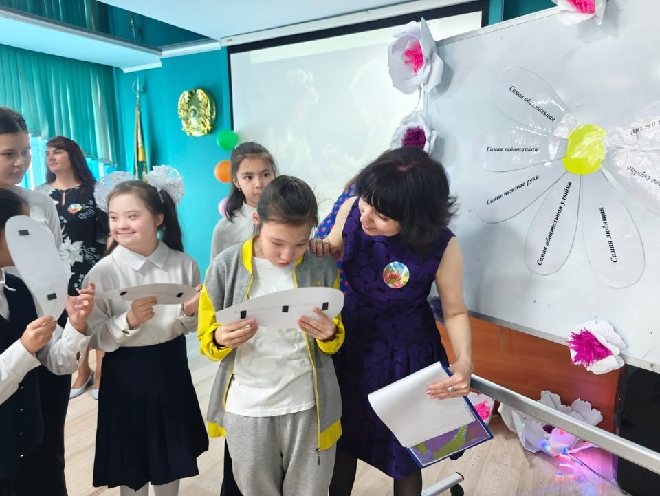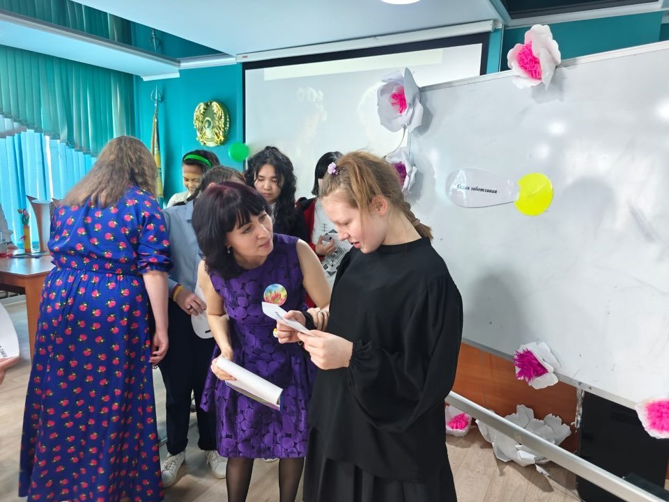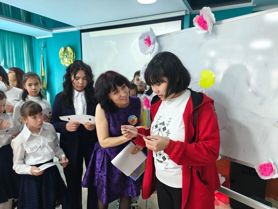 «Құттықтауды жеткіз» ойыны да қызықты өтті: музыка әуенімен шеңбер бойымен гүл беріліп отырды. Музыка тоқтағанда, гүл қолында қалған оқушы 8 Наурыз мерекесіне арнап жылы лебізін білдірді. Зал шынайы құттықтаулар мен қуанышты сәттерге толды.