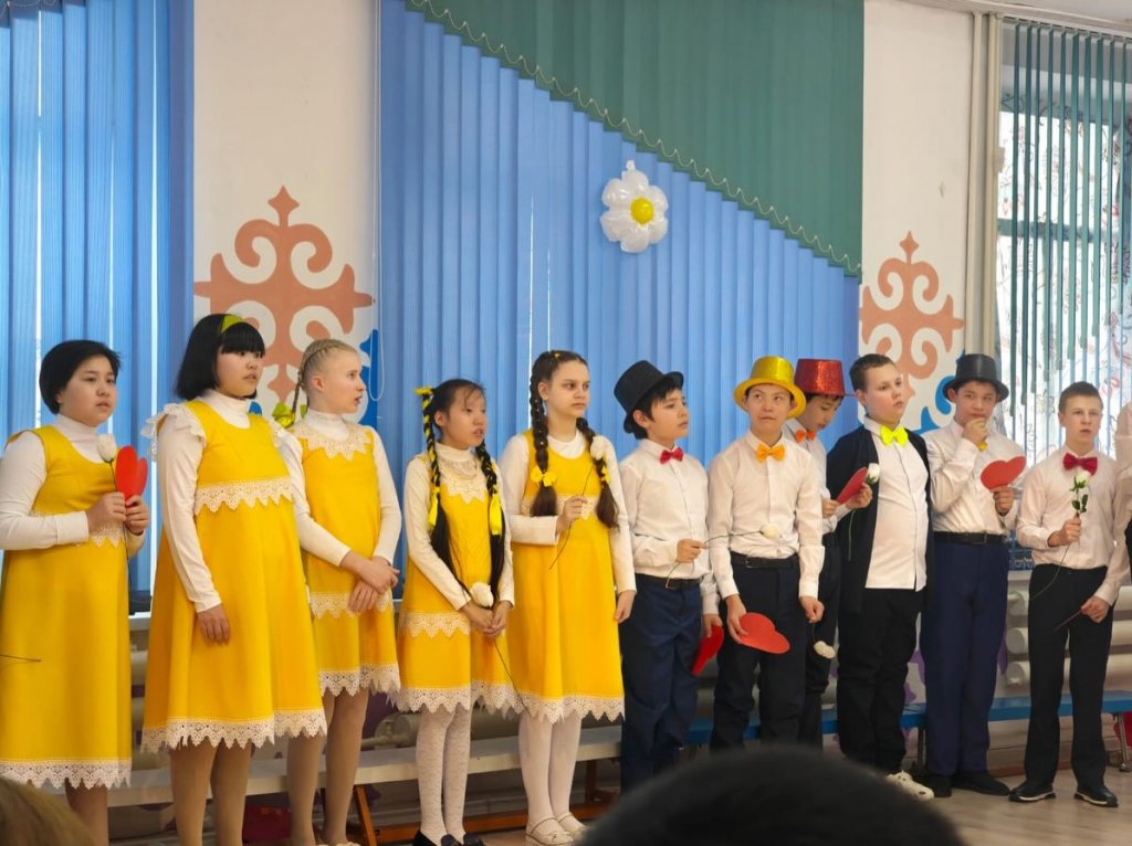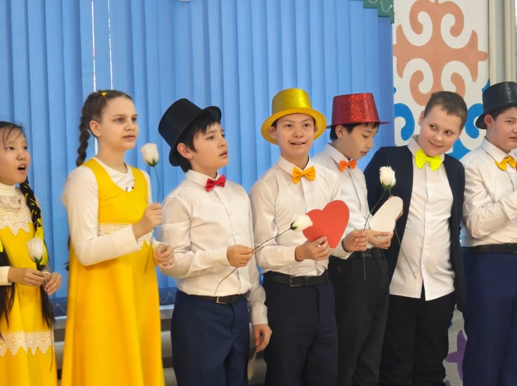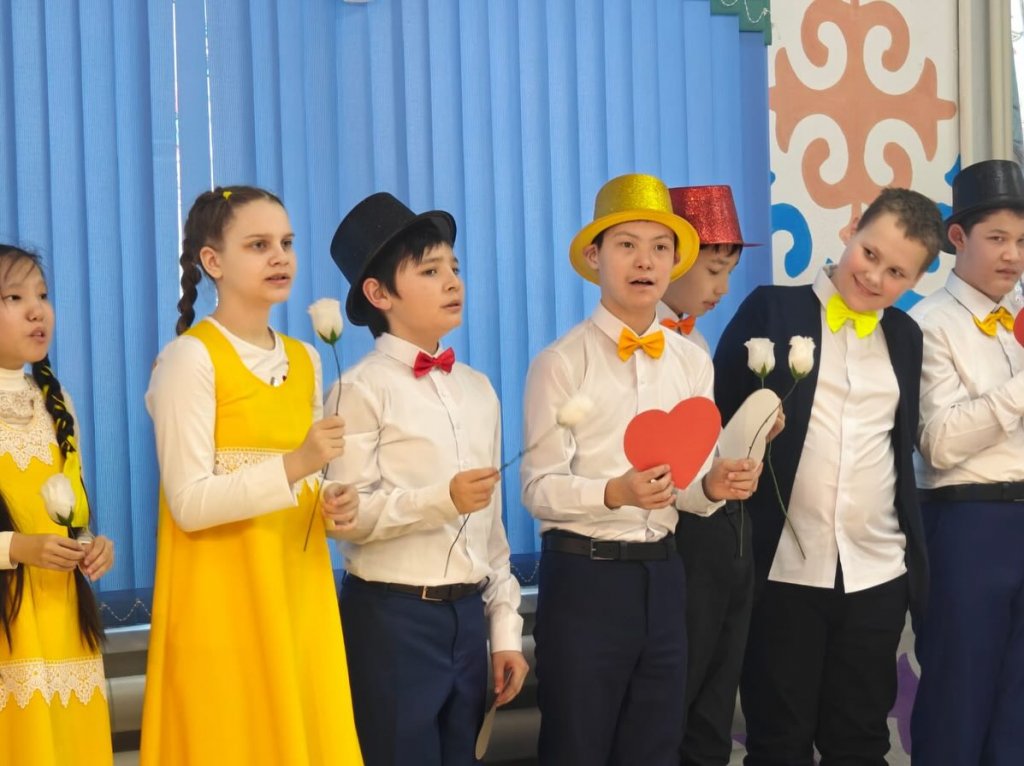 Мерекелік бағдарламаға 7–8 сынып оқушылары қатысып, мектептің аяулы аналары, әжелері және ұстаздарына арналған жүрекжарды құттықтауларын ұсынды.