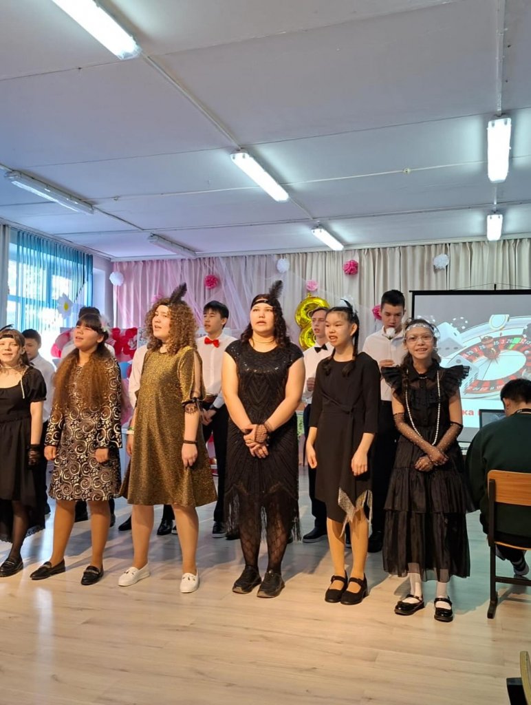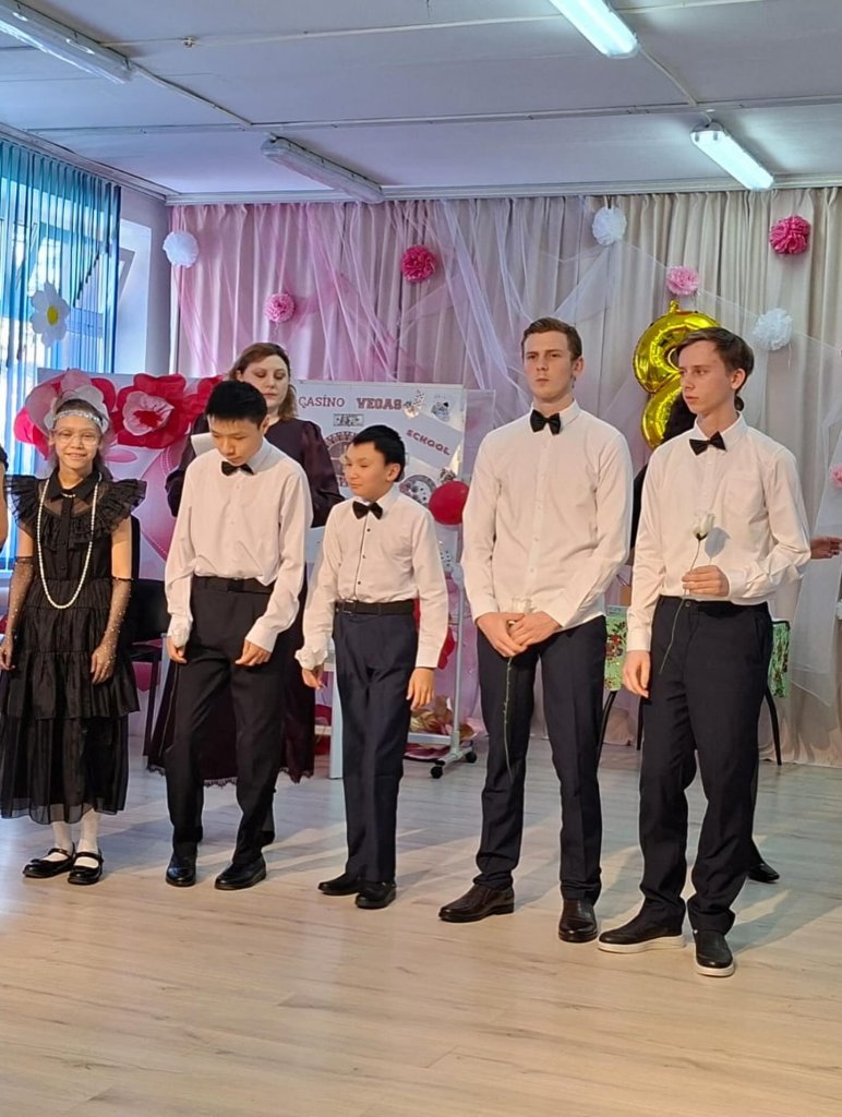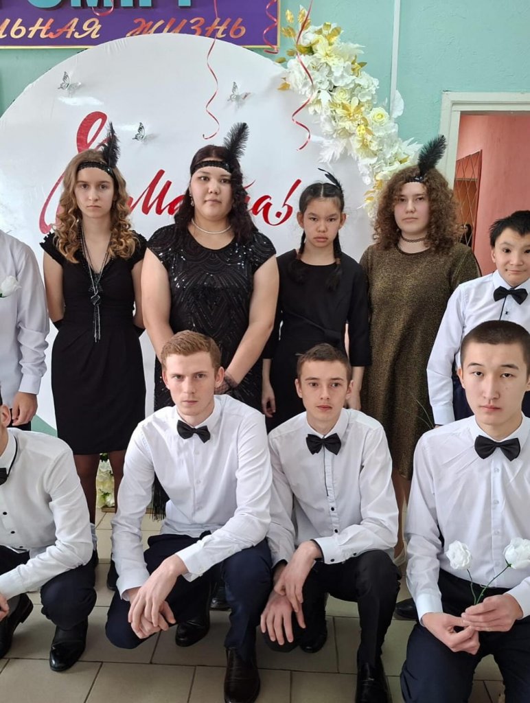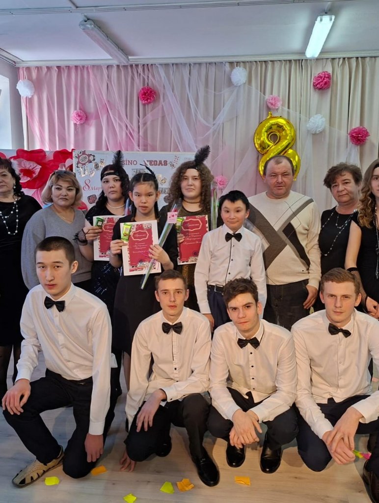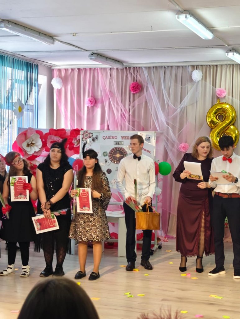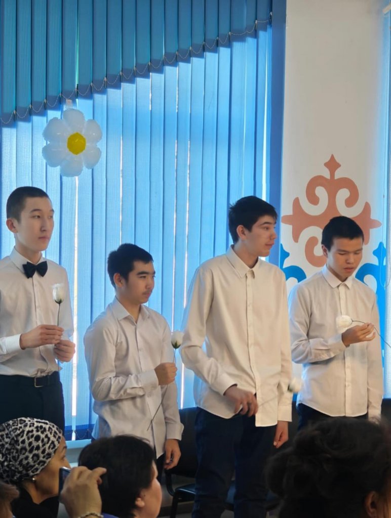 8-10 сынып оқушыларының, мұғалімдердің және аналардың қатысуымен көктемгі 8 наурыз мерекесіне арналған мерекелік ертеңгілік.